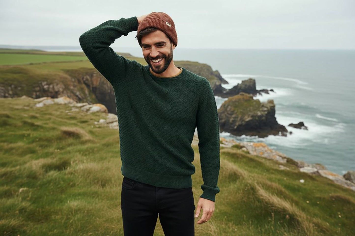 Our Men's Fine Knit Jumper combines style and sustainability with its lightweight organic cotton construction. The basket-style weave creates a textured finish that provides both warmth and breathability. Perfect for seasonal layering or as a standalone piece, this fine knit sweater offers versatile everyday comfort with a laid-back coastal feel. The ribbed cuffs and hem ensure a flattering fit that maintains its shape wear after wear.