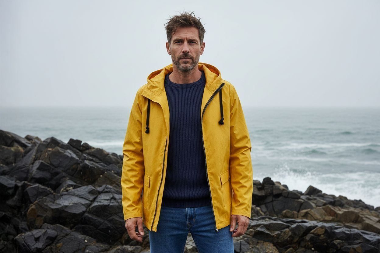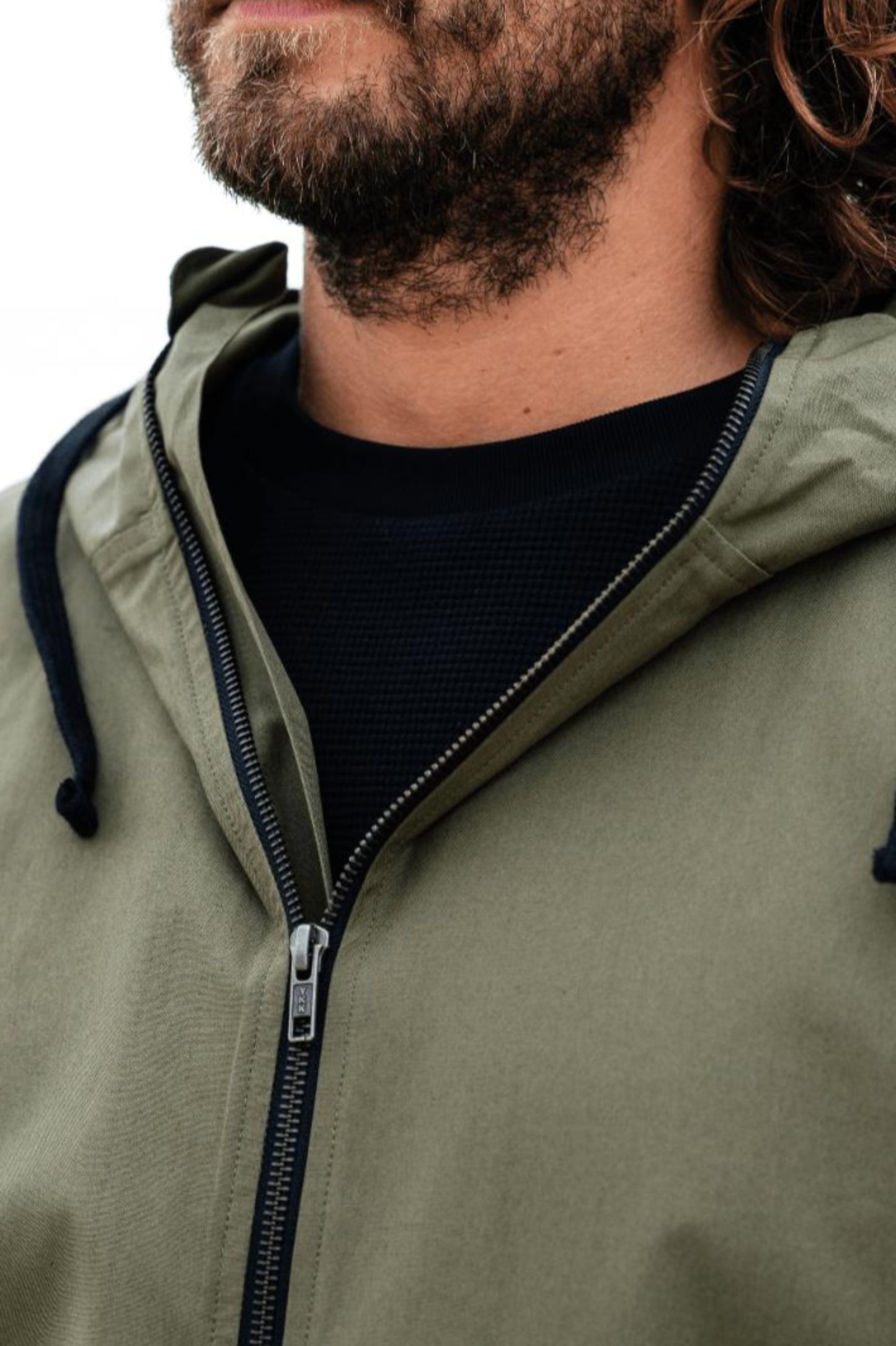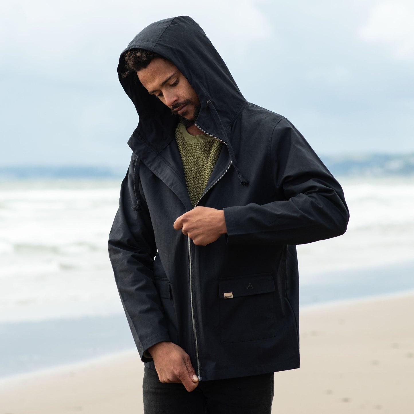 Our Men's Raincoat is designed for all-weather protection, perfect for unpredictable British conditions. Crafted from organic cotton with a PFC-free water-resistant outer layer, this sustainable zip jacket is entirely plastic-free. The adjustable hood and convenient hand pockets enhance functionality, while its compact design makes it ideal for everyday wear. This windproof men's zip-up jacket combines practicality with environmental responsibility - a reliable companion for outdoor adventures without compromising on style or sustainability.