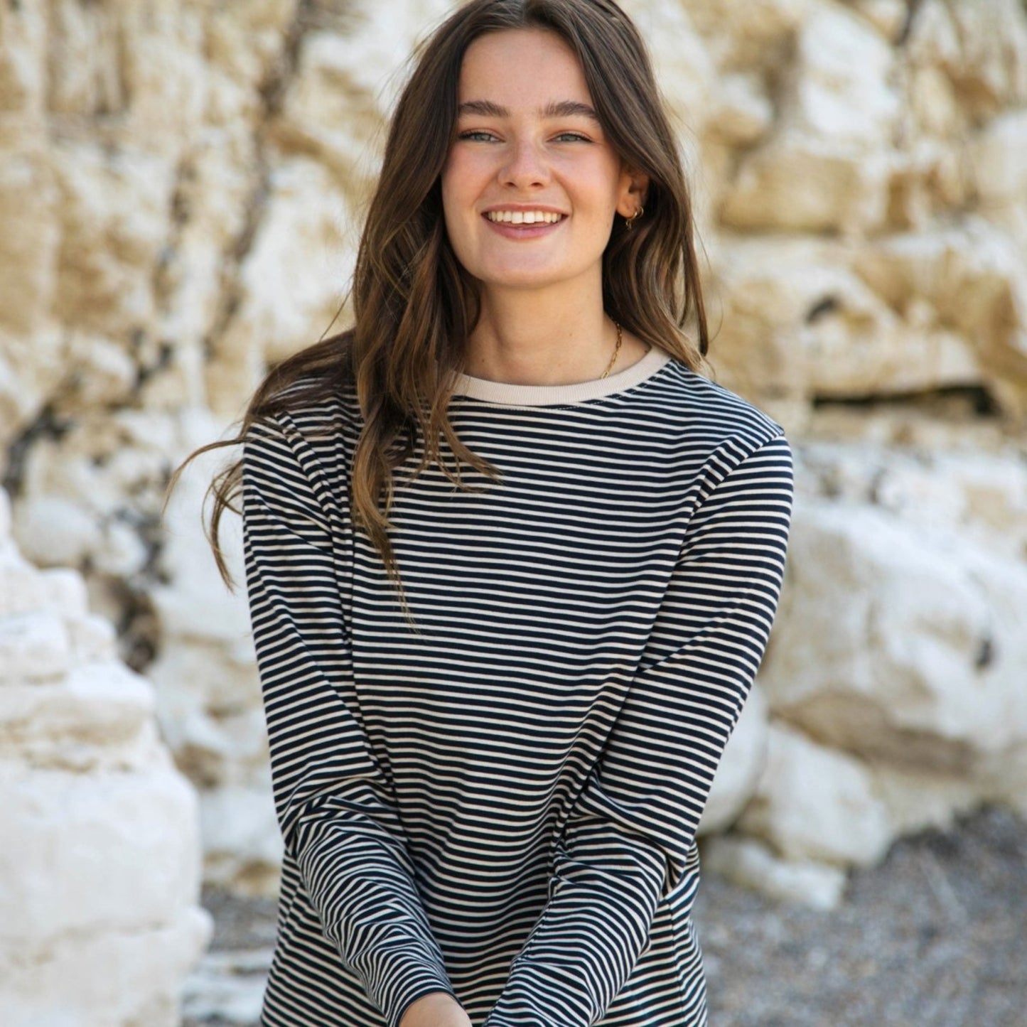 This women's striped long sleeve t-shirt is crafted from premium 230gsm organic cotton for exceptional warmth and comfort. The classic nautical stripes give this versatile ladies long sleeve t-shirt a timeless appeal - perfect for everyday layering whatever the season. Soft against skin and built to last, it's the striped tee you'll reach for again and again.