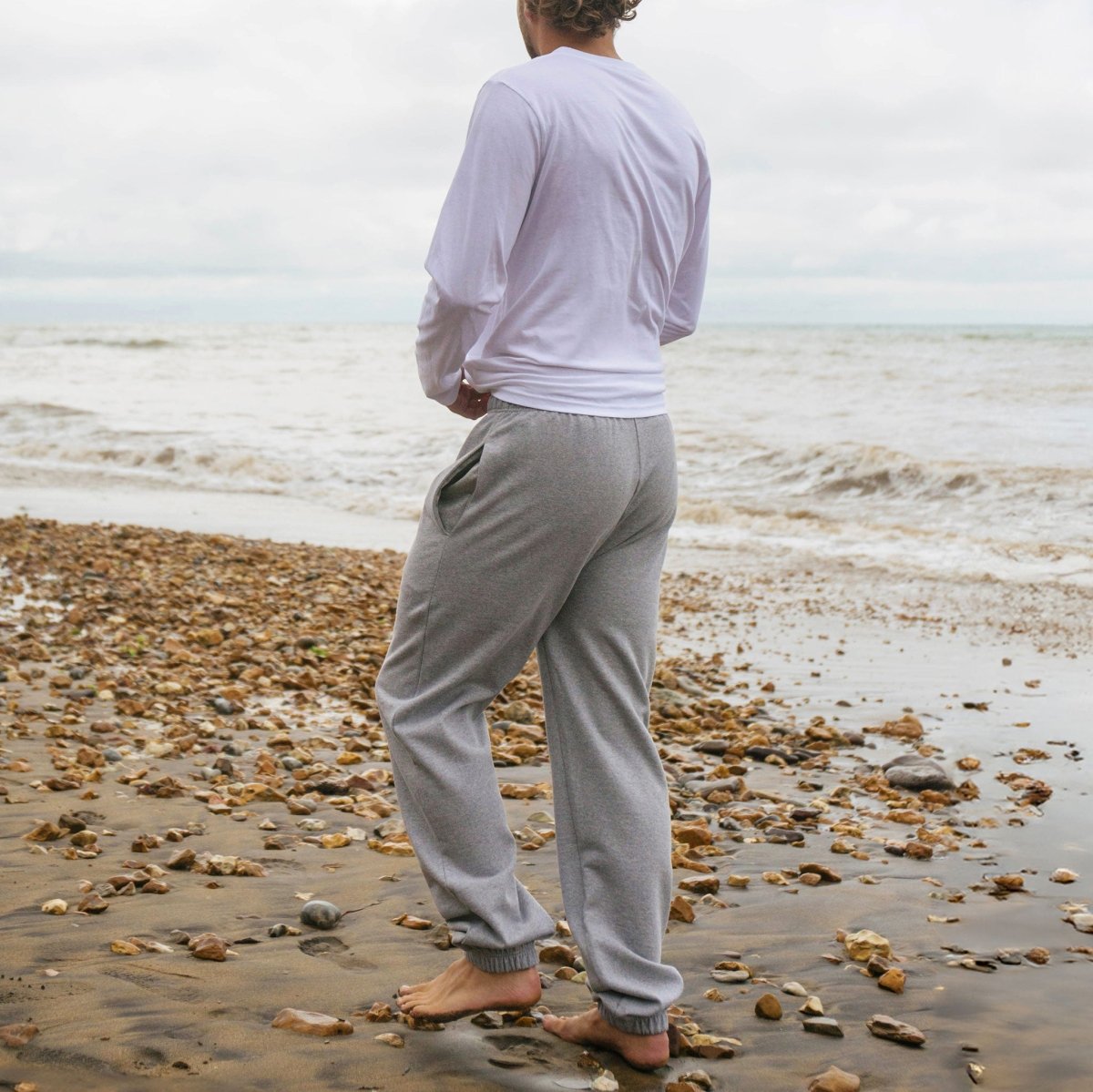 Our Men's Organic Cotton Joggers are designed for ultimate comfort, whether for slow days at home or to throw on after a swim or surf. Featuring ankle cuffs and an internal drawstring waistline to keep in warmth, these organic joggers combine breathability with cosy comfort. The straight-leg, unisex fit makes these organic cotton mens joggers a versatile staple in any wardrobe - perfect for lounging or everyday casual wear. Made with 100% organic cotton for that soft-against-skin feel you'll love.