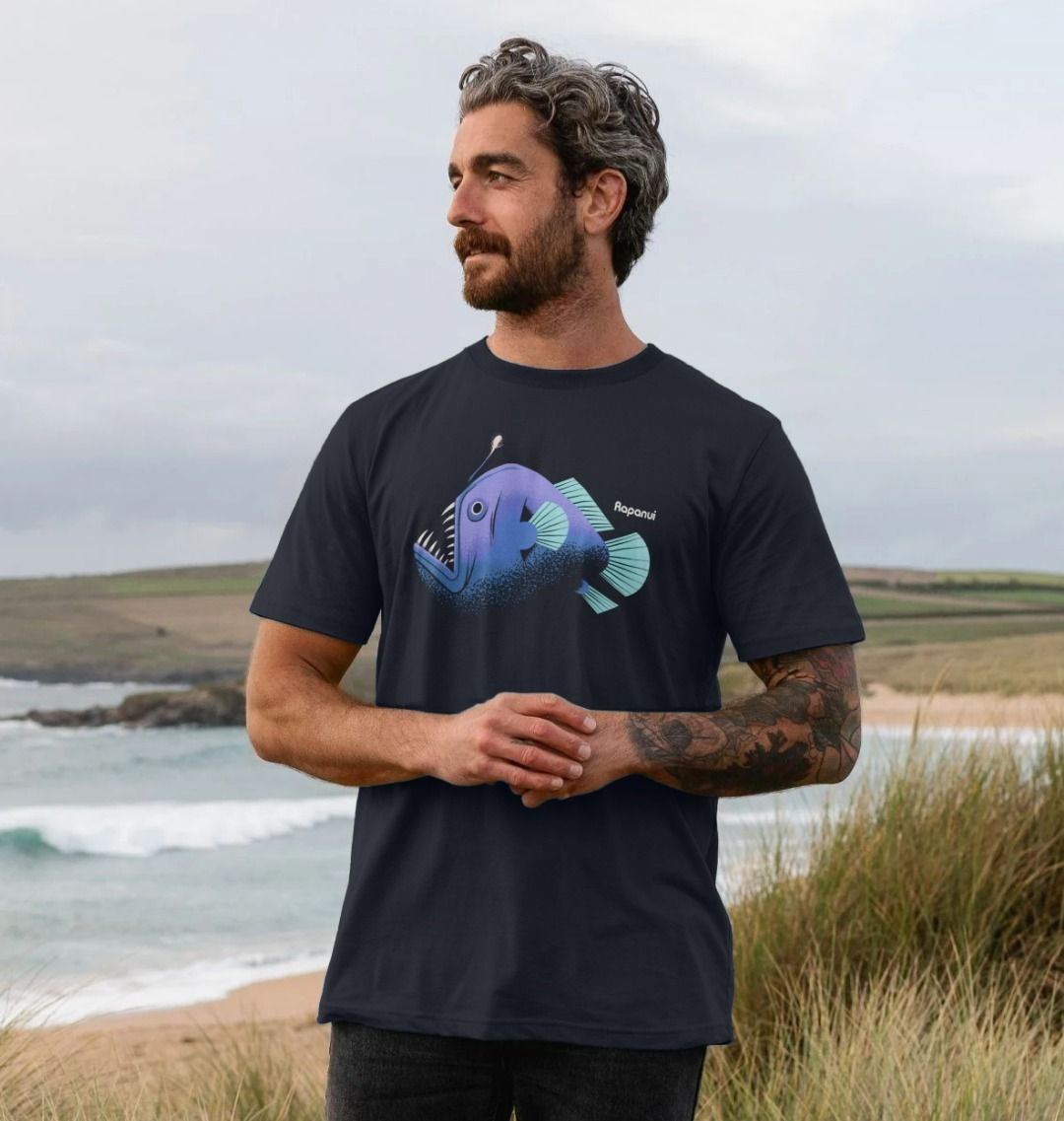 Dive into ocean-inspired style with our Anglerfish T-Shirt. This striking navy tee features a vibrant blue deep sea creature design that stands out from the crowd. Made from super-soft organic cotton and printed using low-waste technology in the UK, this anglerfish tee combines comfort with sustainability. Perfect for ocean lovers and marine life enthusiasts who want to make waves with their wardrobe choices.
