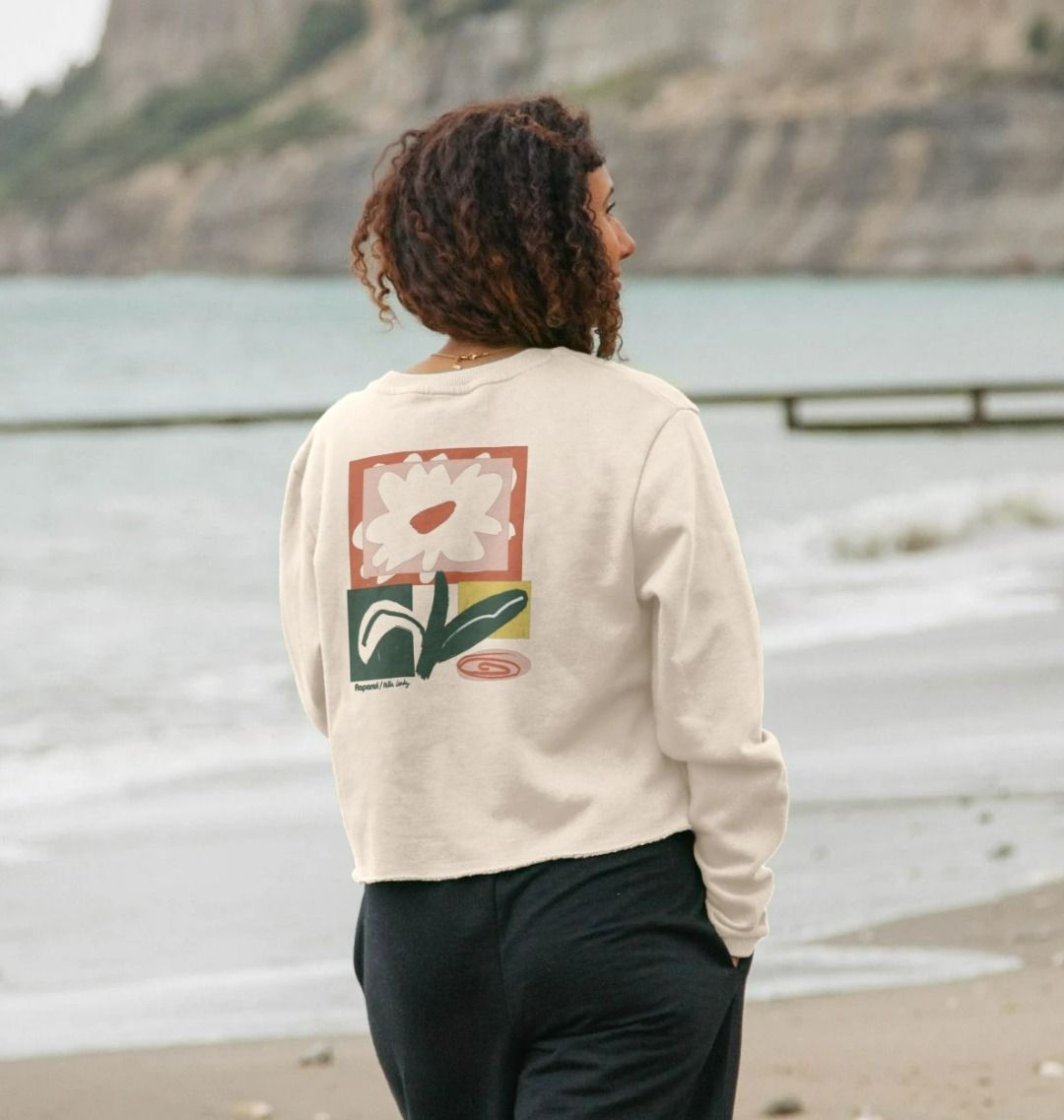 The Rapanui x Millie Sandy collab celebrates our connection to nature and taking in the changes as the seasons shift. This Women's Still Growing Boxy Jumper is made from organic cotton and water-based inks. Created in our renewable energy-powered factory on the Isle of Wight. This is in our boxy fit.