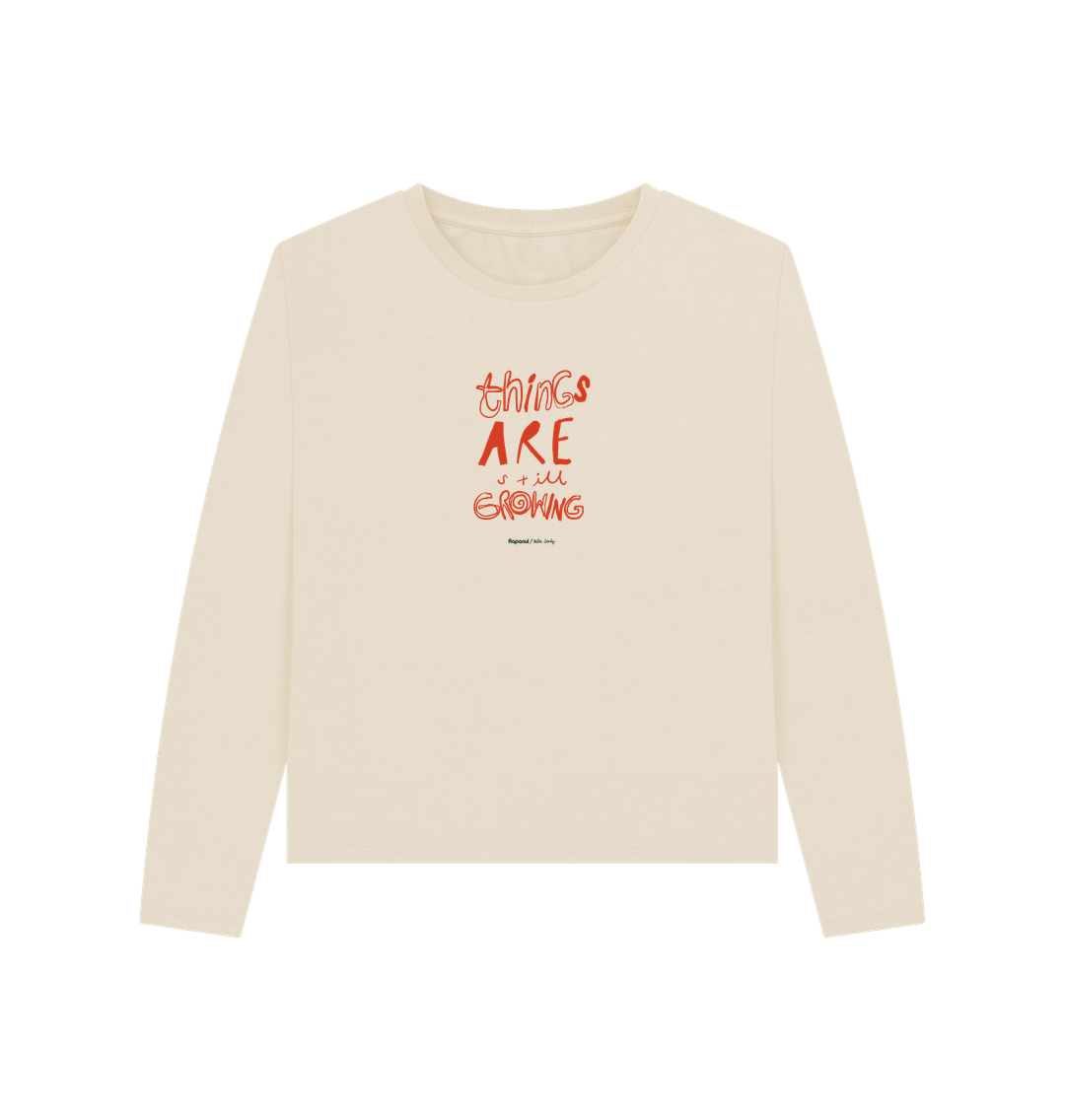 The Rapanui x Millie Sandy collab celebrates our connection to nature and taking in the changes as the seasons shift. This Women's Still Growing Heavyweight Long Sleeve T-Shirt is made from organic cotton and water-based inks. Created in our renewable energy-powered factory on the Isle of Wight.